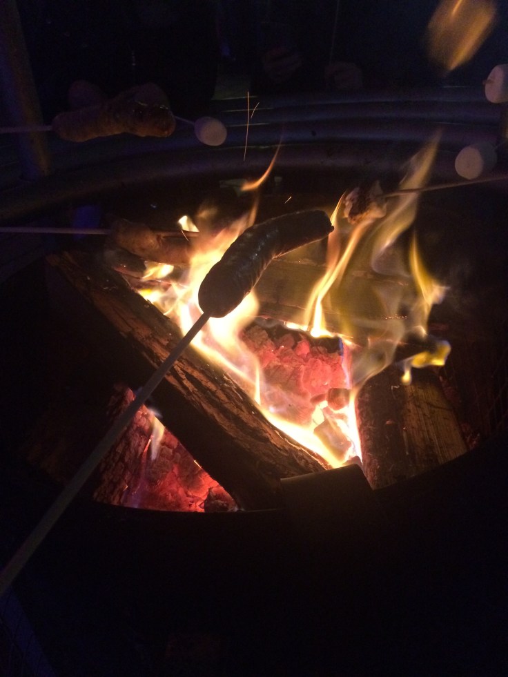 Une des attractions de tous ces événements hivernaux, ce sont les braséros 🔥 : des feux pour se réchauffer, mais pas seulement… ils servent aussi à faire chauffer des chamallows, des saucisses (vous connaissez ma gourmandise et ma grande volonté… j’ai donc testé la saucisse érable moutarde, et c’est délicieuxxxx 😇🌭).