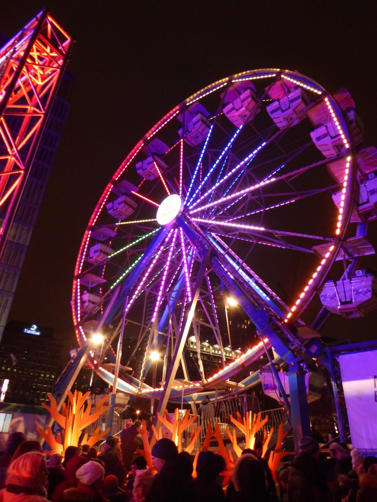 Etant en vacances en France pendant Montréal en Lumières, nous n’avons pas pu profiter de tous les événements organisés, mais aussitôt descendue de l’avion, j’ai filé à la dernière soirée de Montréal en Lumières. Histoire de pouvoir dire « Je l’ai faite », et de ne pas m’endormir de suite 😝 (à cause du décalage horaire).